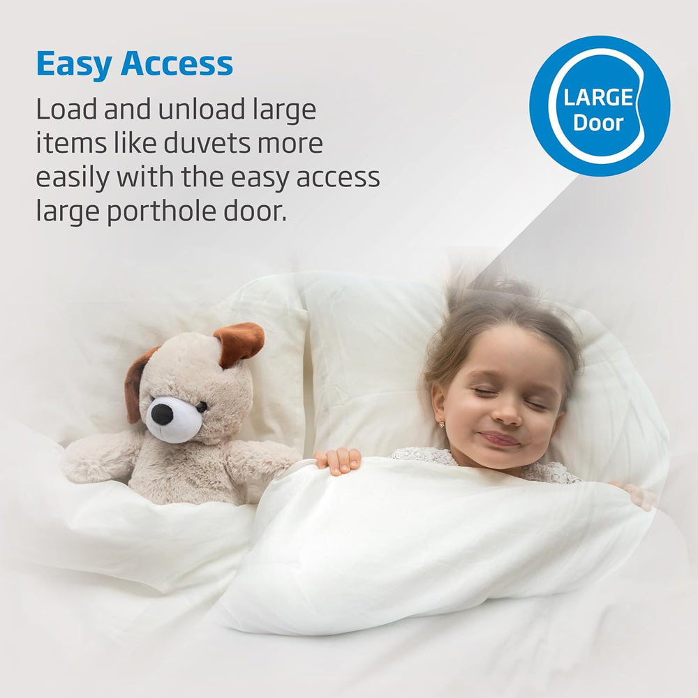 Loading and unloading bulky items is effortless with the extra-large 32cm porthole door. Whether it's a king-size duvet or bed linen, this design feature makes laundry day smoother and more efficient.