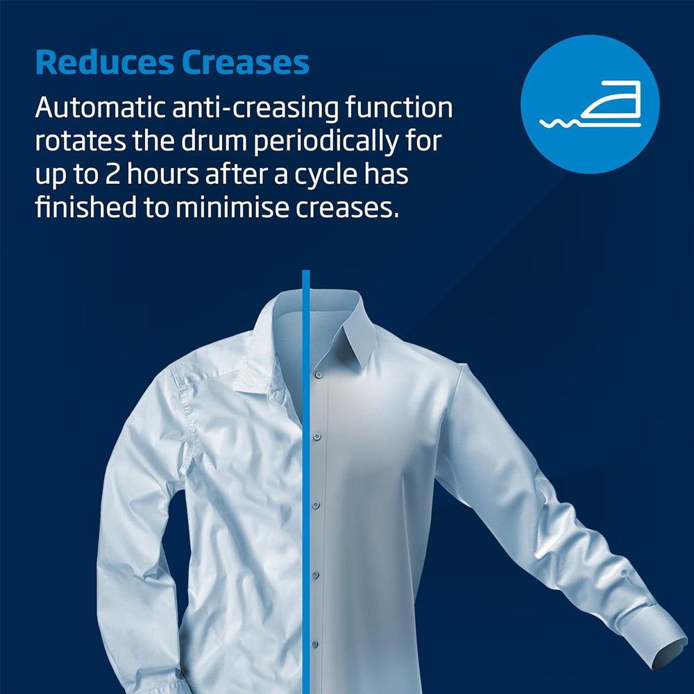 Prevent over-drying with sensor drying programmes that automatically detect moisture levels and stop the cycle when your clothes reach optimal dryness. This not only protects your garments but also helps save energy and reduce running costs.