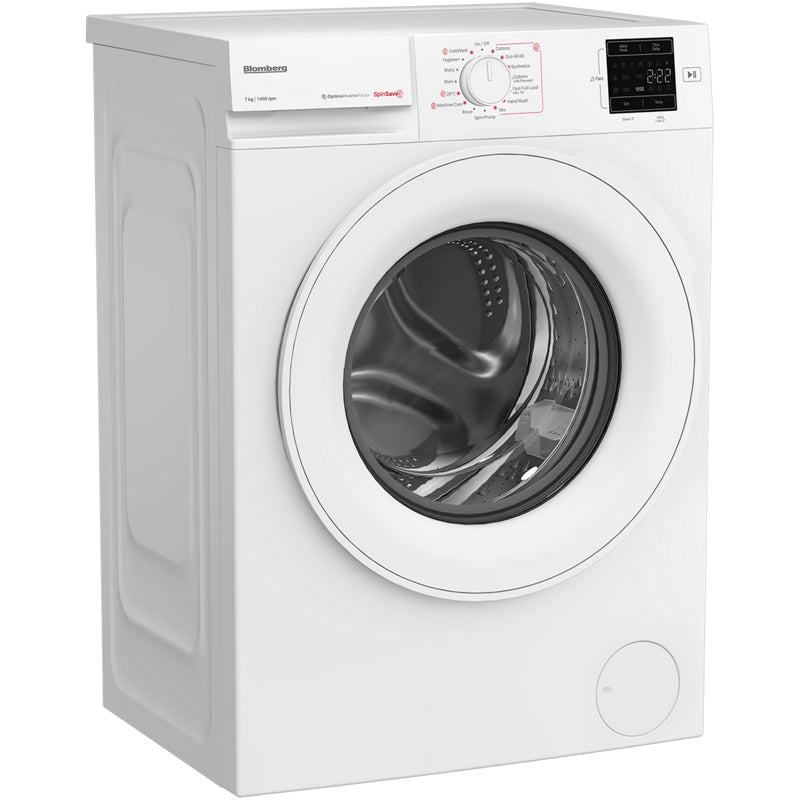 Stay on top of your laundry with this freestanding washing machine from Blomberg. With a 7kg capacity and 15 cycles to choose from, it accommodates a wide range of fabrics. The Fast Full Load option washes a full load in just 28 minutes, ideal for those times when you need clean clothes quickly. SpinSave technology helps you save up to 35% of energy by effectively dissolving detergent for better cleaning on frequently used programs. The Optima Inverter motor ensures a reliable, energy-efficient, and quieter operation, making it perfect for homes with children. Additionally, the LWA27461W features automatic water reduction for half and small loads, ensuring you only use the necessary amount of water. This model also includes dial controls and an LED display for easy operation.