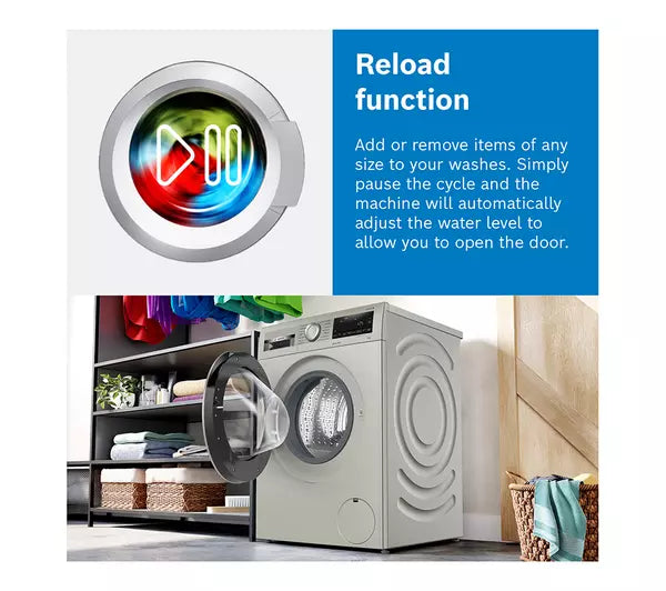Enjoy hassle-free laundry management with features like Acoustic Signal and Add To Wash function (Reload Function). Tailor your wash to fabric needs with Adjustable Temperature and Anti-Crease Option (EasyIron Function), all while Automatic Load Recognition optimizes resource usage.