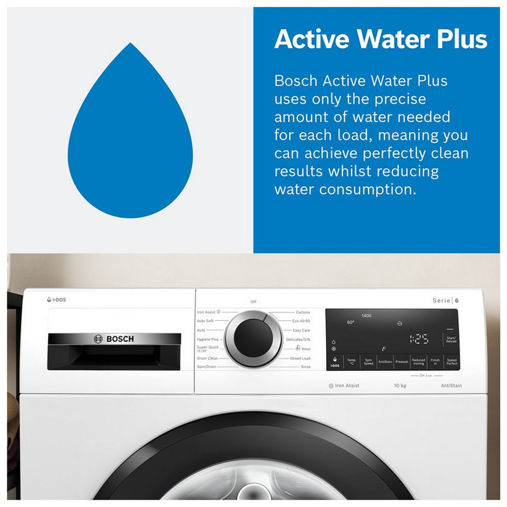 The Bosch WGG244ZCGB washing machine, with its 9kg capacity, simplifies the task of tackling your laundry pile. Its SpeedPerfect feature allows you to reduce cycle times by up to 65%, ensuring efficient cleaning without sacrificing the quality of results. This feature is compatible with most programs, load sizes, and fabric types, offering you complete flexibility in your laundry tasks.