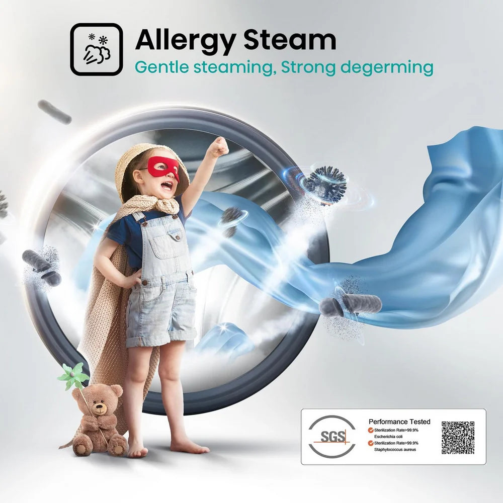 Built with an advanced inverter motor, this Hisense 10kg washing machine ensures quieter operation and reduced energy consumption. By generating less heat, the motor increases efficiency and extends the appliance’s lifespan, making it a reliable addition to any home.