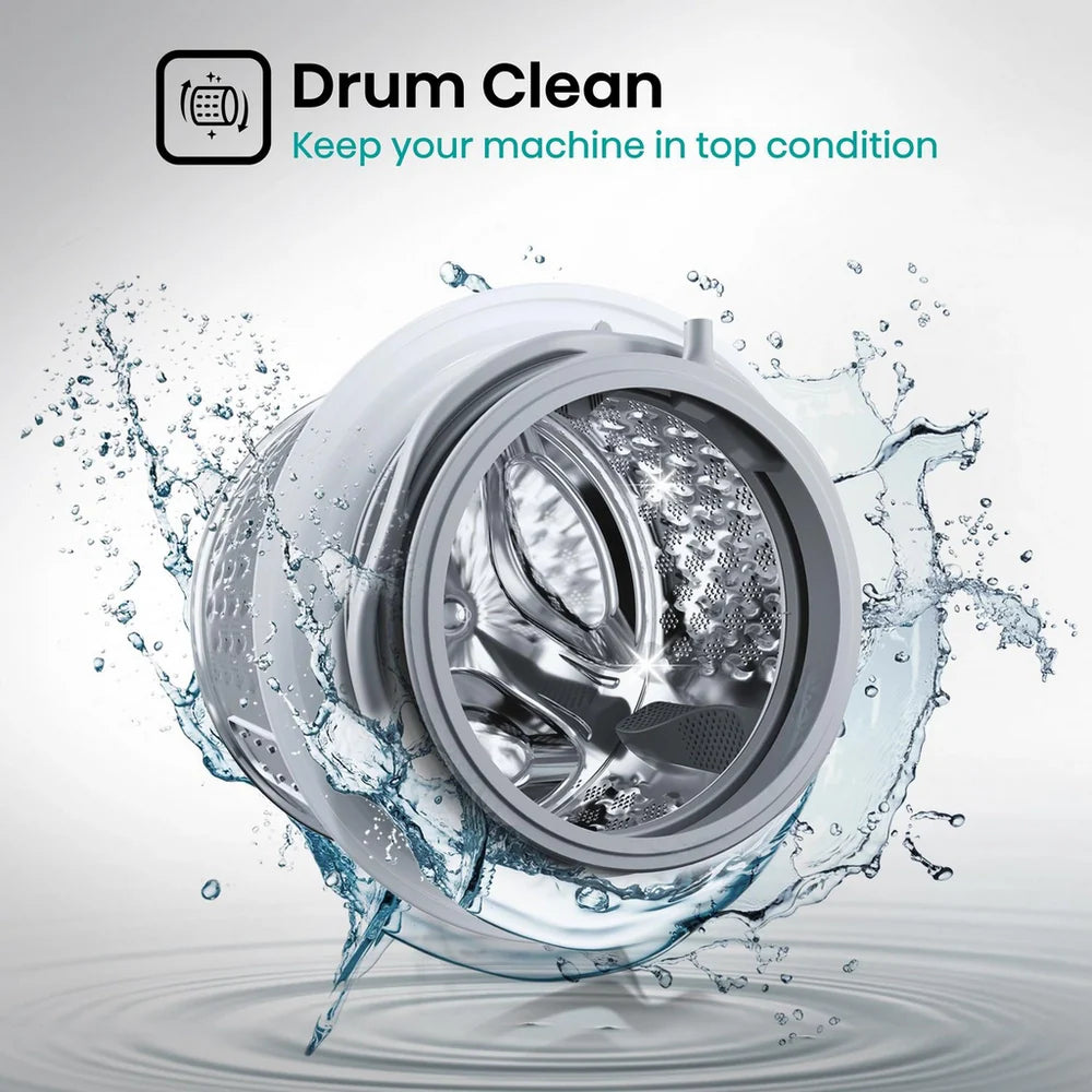 Maintain a hygienic and odour-free drum with the powerful Drum Clean cycle. Using hot water and high-speed spins, it effectively removes detergent residue, dirt and bacteria from every corner of the drum – even the hard-to-reach seals. Regular use helps improve washing performance and keeps your laundry smelling fresh.