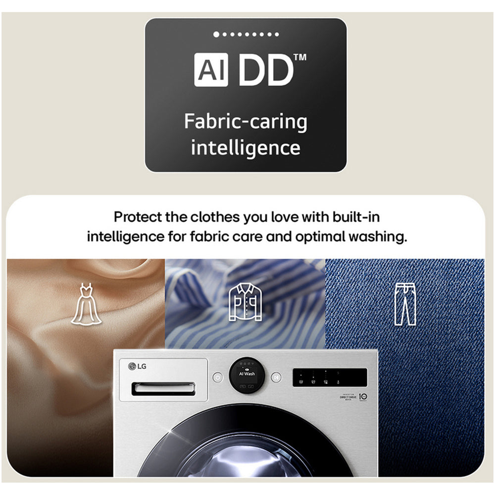 LG AI Direct Drive™ detects load and fabric characteristics to offer 18% more fabric care. |